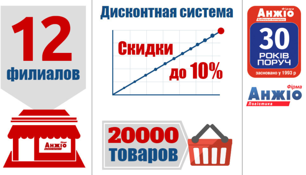 В умовах жорсткої конкуренції, для того щоб зберегти лояльність наших постійних клієнтів, ми намагаємося розширити спектр наданих нами послуг, серед яких: гнучка дисконтна система, експрес-доставка товарів, послуги спецтехніки, індивідуальна робота по комплектації об’єктів. тематиці, і читаючи відгуки про нашу компанію, мені сподобався коментар одного з користувачів, він написав так: “Є хороші магазини, є погані, а є Анжио”.
