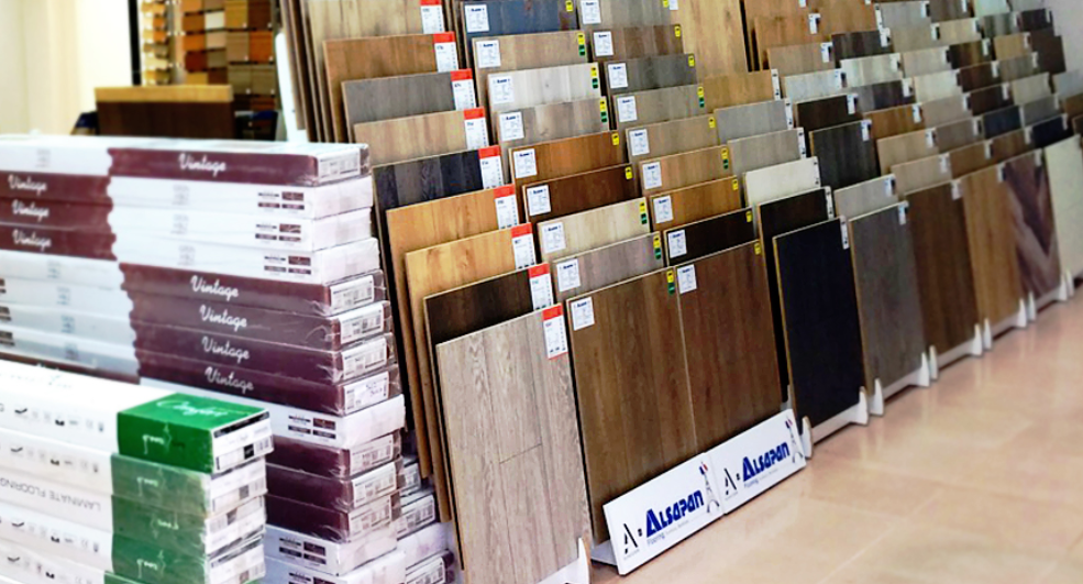 підлогові покриття (ламінат, плінтус підлоговий та стельовий, паркетна дошка, підкладки під ламінат, порожки, терасна дошка, килимотримачі),